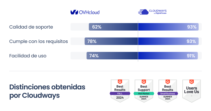 Cloudways destaca frente a OVH con funciones avanzadas, una cobertura más amplia y una facilidad de uso inigualable.